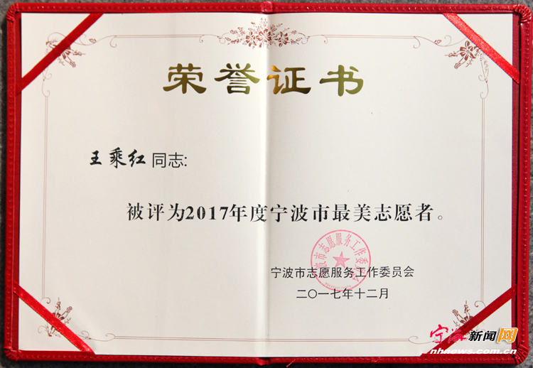 人们认识志愿者一般有两个关键词:一是年轻,二是业余。而他今年已经59岁,且是个“专职”的志愿者:全年365天,天天在做志愿者,累计为民服务1000多次、2500个小时,2017年底,他被评为宁波市优秀志愿者(十大最美志愿者)之一。