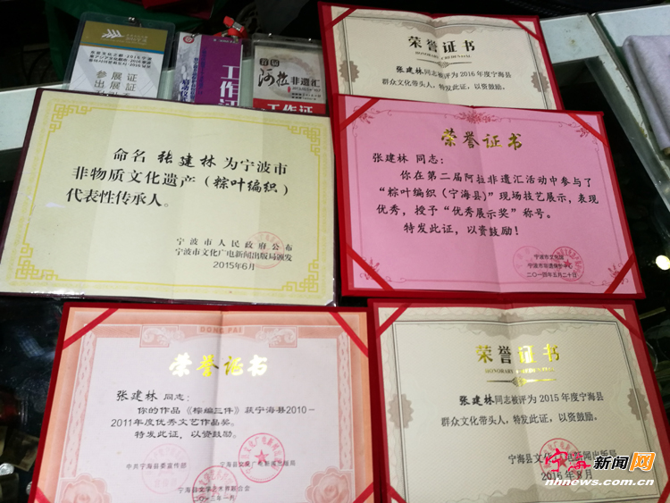 随着国家对中华传统文化的重视,作为棕编传承人,张建林的棕编被宁波市人民政府列入了非物质文化遗产,还经常受邀参加各地的非遗展示和公益讲座,在参加各次的艺术品展示会上,现场示范编织作品时,人气非常旺。“古时候,许多农家的蒲扇、草鞋等生活用具都是由棕榈叶编织而成,孩子们的玩具也是用棕榈叶做的,可以说用途广泛,深受老百姓的喜爱。”张建林说,别看现在大家接触的东西多了,可是见到棕编还是会觉得很新奇。每当张建林在展会上展示起他的棕编技巧,两三分钟编出一只蝴蝶、螳螂的时候,边上总会响起一阵叫好声。
