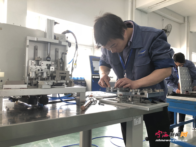记者日前走进位于我县科技园区科技区块的宁波蓝鲸自动化科技有限公司。与多数生产企业厂区隆隆机器轰鸣声的情况不同,这里有些安静。二楼车间里,技术人员三五成群,分别对着各自的项目“精雕细琢”——或打磨模具块,或更新程序代码,或检测运行状况。