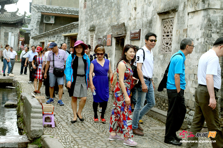 两岸同胞在前童古镇参观。(记者 李江林 摄)