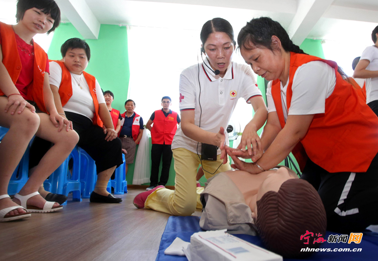 2017年7月,阳光家园学员正在接受红十字急救知识培训。