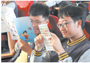 近日,一市中学学生在学习法制宣传相关资料。这是一市镇司法所在一市中学开展题为《远离犯罪,阳光成长》的法制讲座时的一个场景。讲座旨在加强学生的法制文化教育,增强他们的法律意识和自我保护意识。