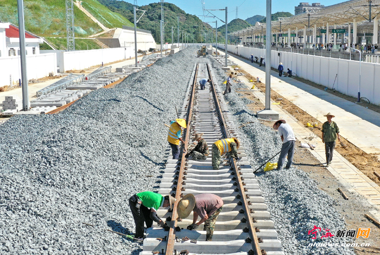 昨日上午,在宁海火车站西侧的杭深线宁海站动车存车场建设工地上,施工人员正在有条不紊地铺轨作业。杭深线宁海站动车存车场一期工程设存车线D1、D2两条,有效长为515米,投资约8900万元,工程预计9月中旬完成验收。该工程完工后,将对缓解宁波地区动车存车能力不足,满足宁海站更多始发需求起到积极作用。