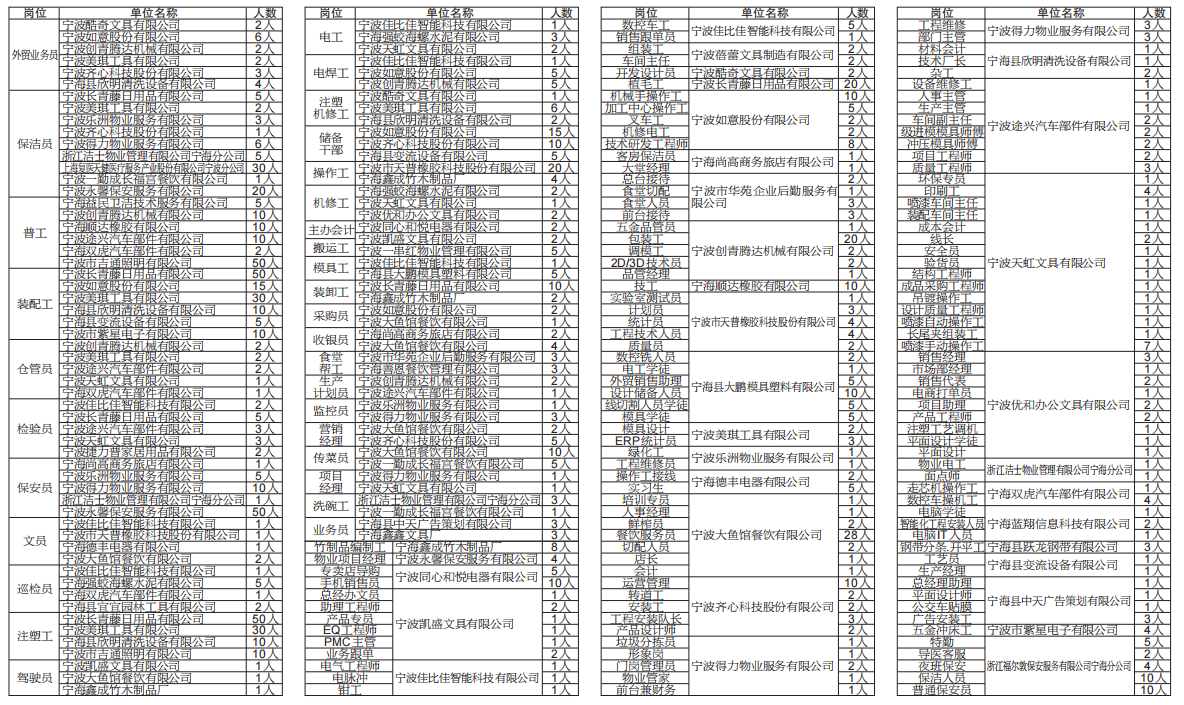 宁海县人力资源市场招聘信息(4月22日)