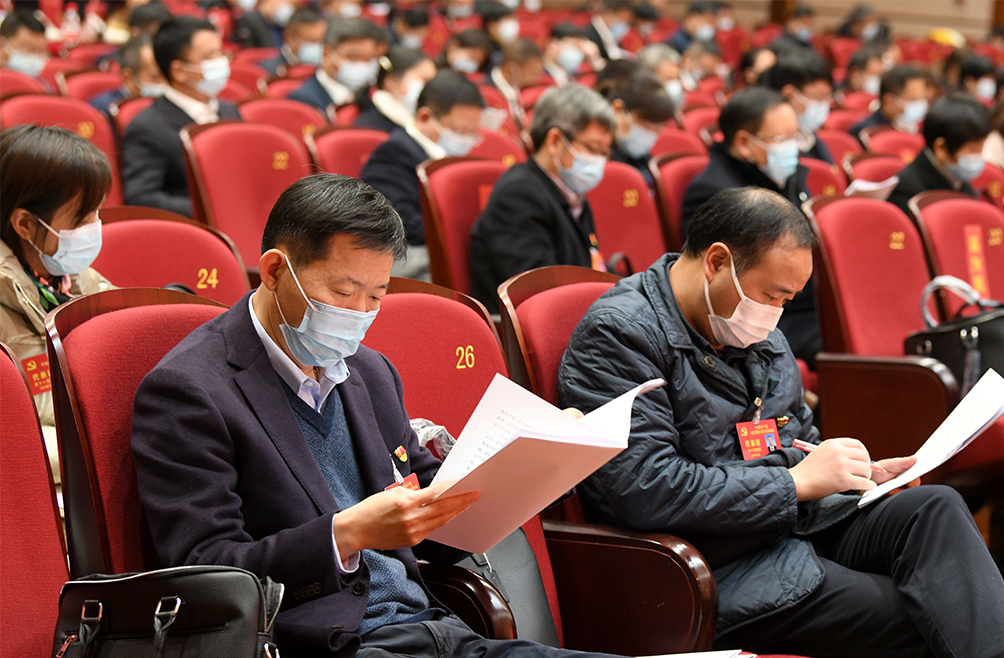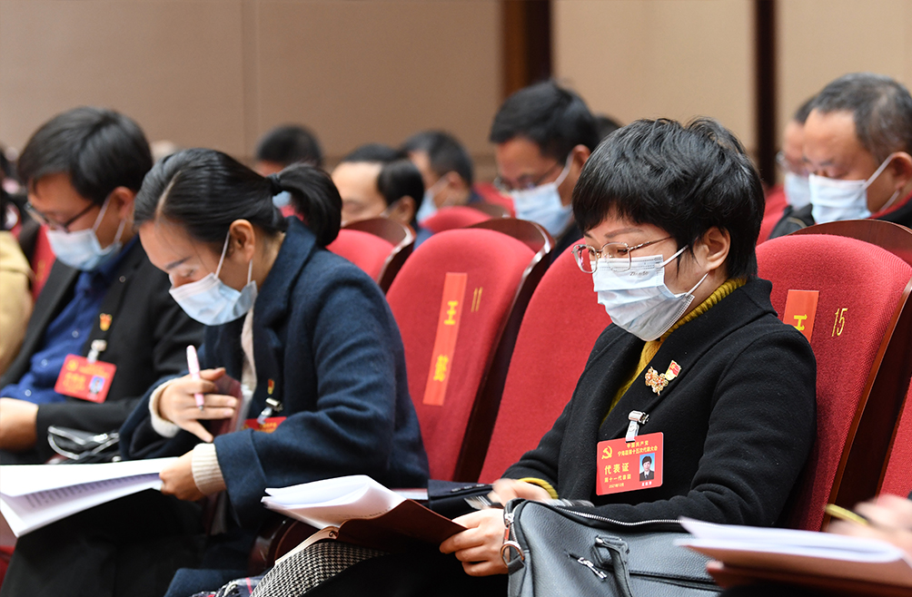 与会党代表认真听取大会报告(记者惠广亮摄)