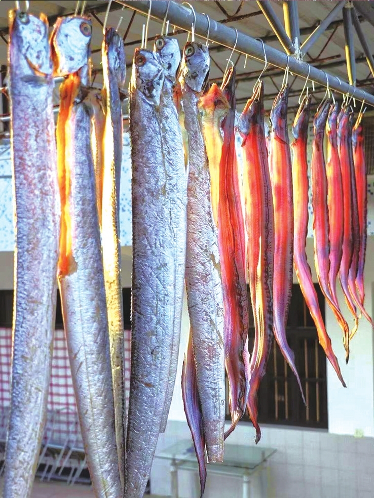 风鳗的制作工艺颇为讲究,要经过反复腌渍和风干。当地渔民秘制的风鳗色泽光亮、肉质厚实、口感鲜美。蒸过后,风味更是绝佳,总能让食客大快朵颐。