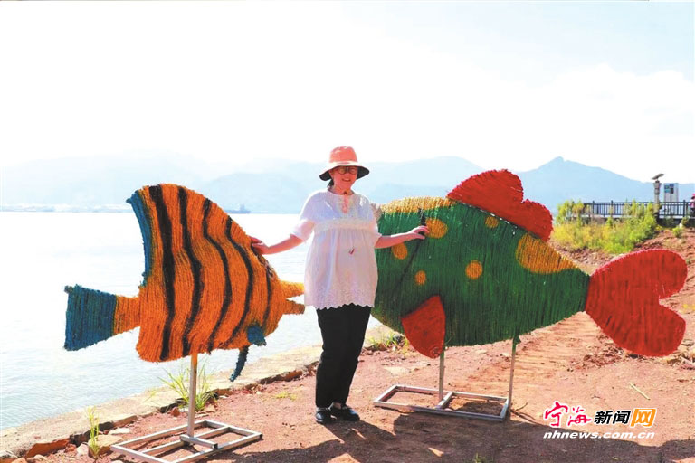 惟妙惟肖的海洋生物卡通草雕置身于山海间,吸引市民前来游玩拍照。
