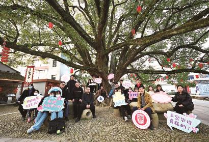 大通宣威府,喜迎八方客。东华大学、江南大学、浙江工业大学、安徽大学……2月27日,2022长三角艺术振兴乡村高校毕业设计联合行动“乡聚毕设”,在浙江省宁波市宁海县岔路湖头村正式拉开大幕,长三角12所高校设计专业的师生走进宁海,把毕业论文写在大地上,用设计为乡村振兴助力(见右图)。作为活动发起人,东华大学服装与设计学院教授、博士生导师陈庆军激动的心情溢于言表。