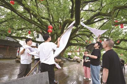 临近毕业,王宣宣开始为实习工作忙碌。最终选择在服装设计领域做平面设计的她,特地跟公司请假赴宁海参加这场特别的毕业论文答辩。在下畈村的大樟树下,王宣宣将用这样一种特别的形式,为她的大学生涯画上句号。