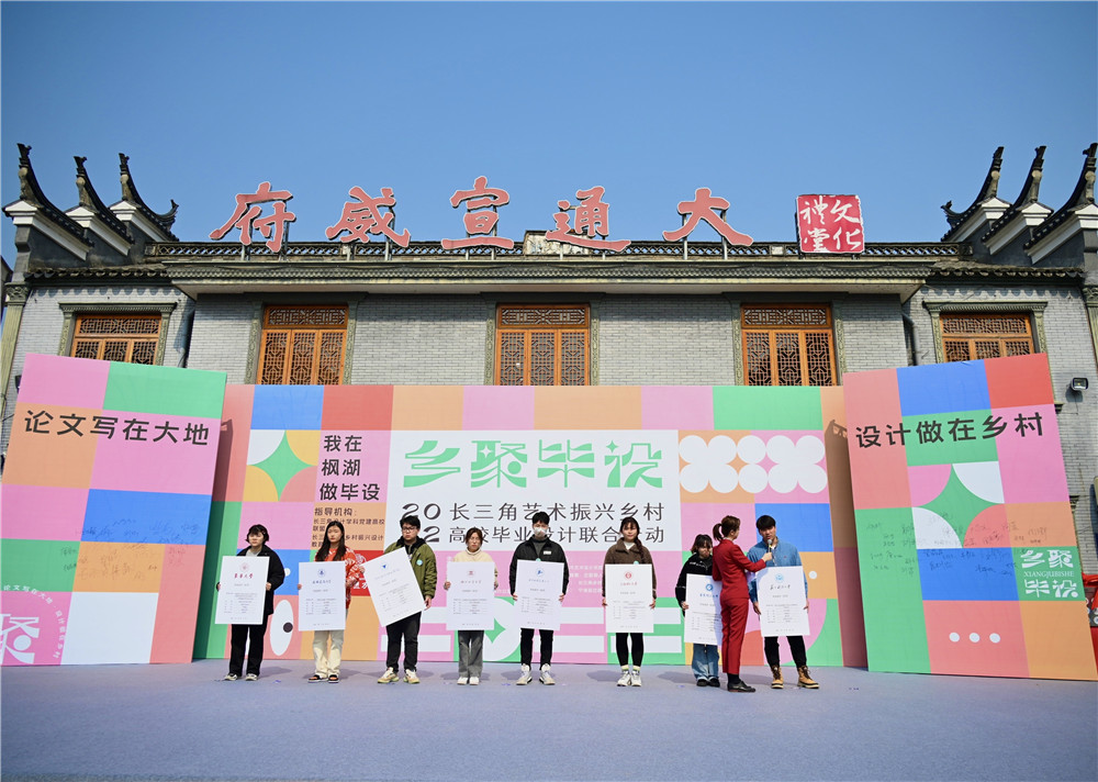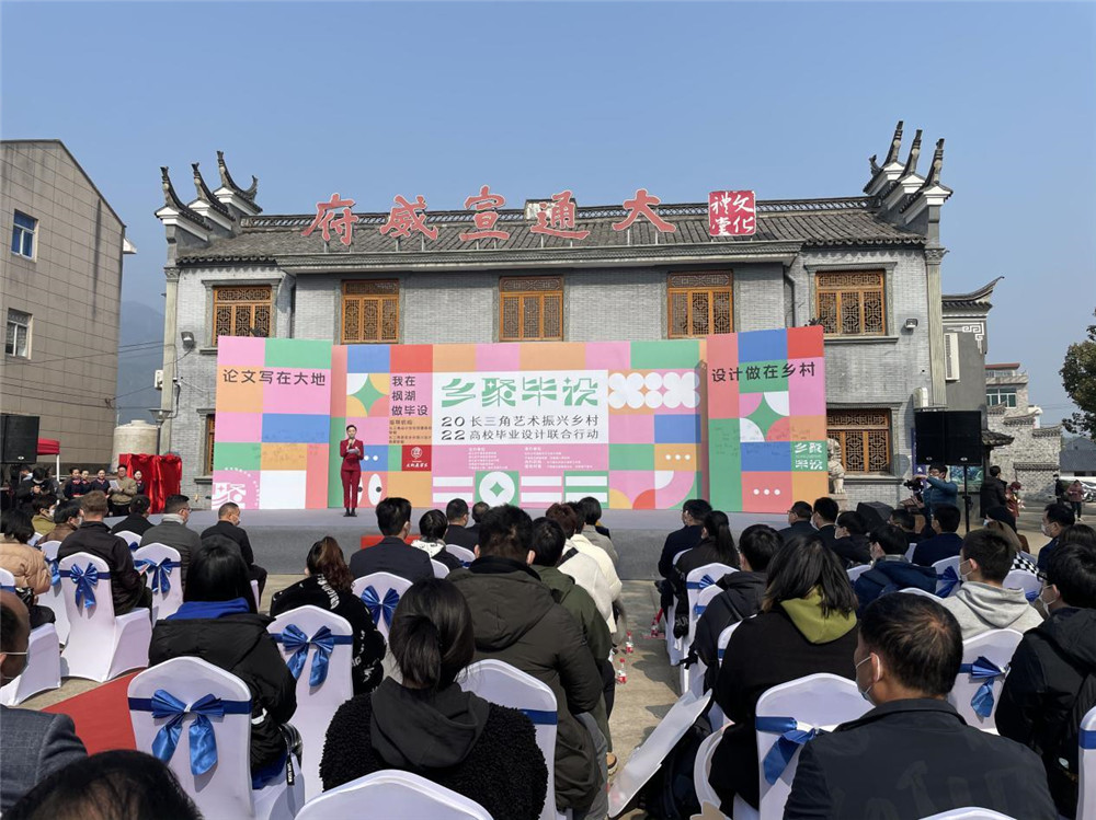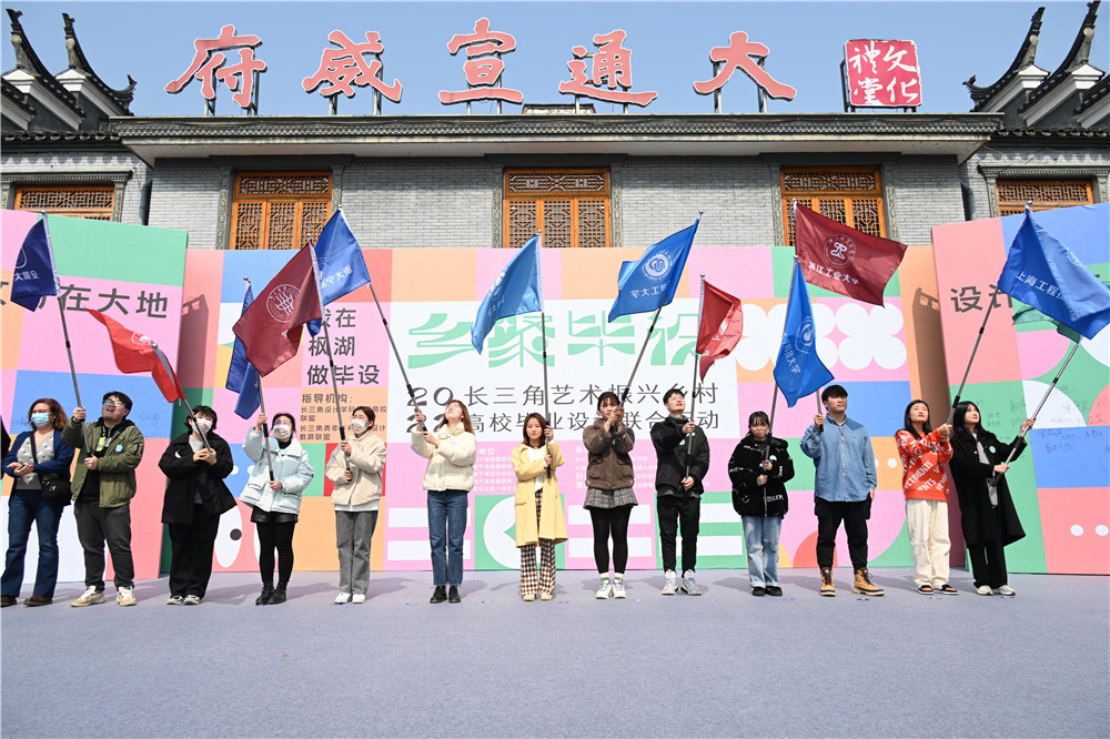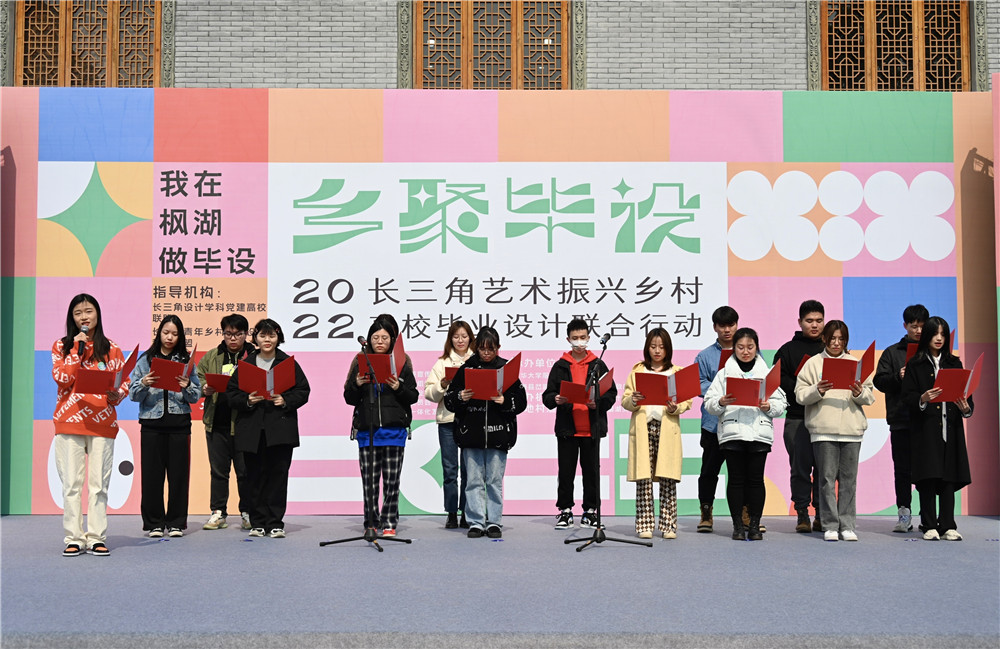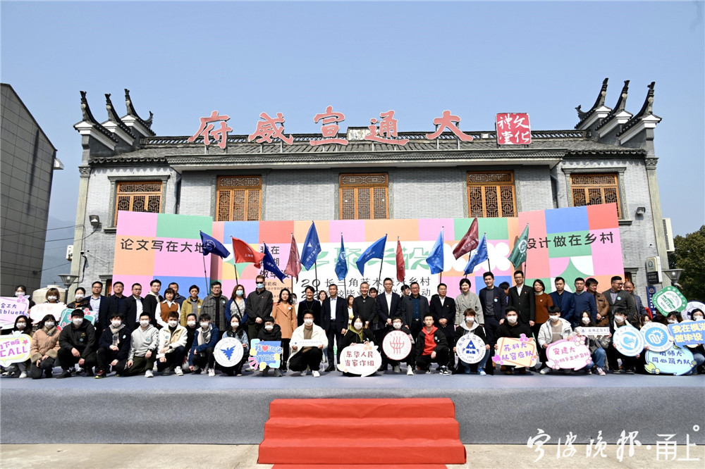 2月27日,来自长三角12所艺术设计类院校的大学生代表们汇聚于宁海县岔路镇湖头村,发起“我为乡村作贡献”倡议,立志用青春的力量来推动乡村振兴。同时,“我在枫湖做毕设”——长三角艺术振兴乡村高校毕业设计联合行动也在现场正式启动,60件毕业设计将“画”在湖头村的土地上。