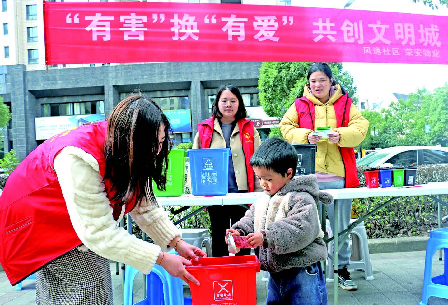 昨日,桃源街道凤逸社区在凤凰城小区开展“有害换有爱共创文明城”有害垃圾收集活动,为全民垃圾分类回收按下“快进键”。