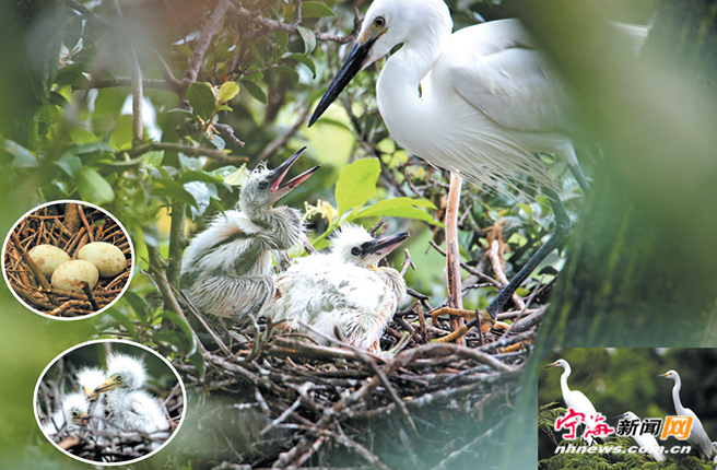 由于少有天敌,也没有人为干扰和破坏,鹭鸟孵化率和成活率特别高,雏鸟成长也特别快。监测显示,4月15日,第一批鹭鸟飞抵狗山岛开始筑巢;5月13日,首次发现夜鹭宝宝破壳;截至目前,夜鹭、白鹭宝宝出生较多,牛背鹭、苍鹭、池鹭则相对产卵较晚,许多鹭宝宝还在孵化中。
