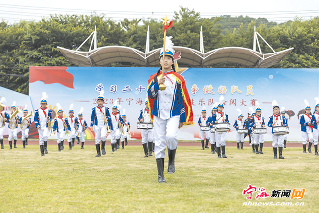日前,由团县委、县教育局、县少工委主办,回浦小学、县青少年活动中心承办的“学习二十大·争做好队员”2023年宁海县少先队鼓乐队检阅大赛在回浦小学举办。全县共有9支队伍450余名少先队员参加。各个学校的少先队员们身着靓丽的服装,迈着整齐的步伐,个个精神抖擞、英姿飒爽,通过主题鲜明、寓意深刻、新颖独特的队形队列变化,全方位展示了我县少先队员朝气蓬勃、昂扬向上的精神风貌。