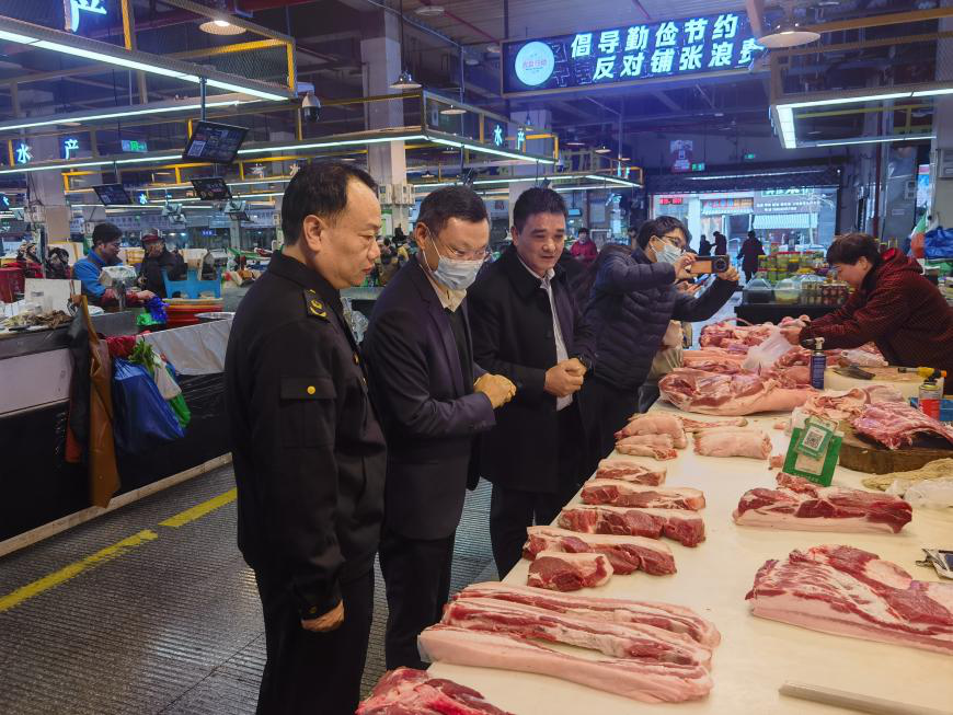 2024年1月5日,杨周宏副县长来到跃龙综合市场开展食品、安全调研。杨周宏仔细检查了市场内生鲜灯整治、农产品快检工作落实情况等。他指出:生鲜灯整治工作值得肯定。农贸市场涉及民生,事关千家万户老百姓“菜篮子”安全,市场监管部门要履行好监管职责,在确保食品安全的基础上加强对企业履行法定义务监督指导,在规范企业经营行为才能更好地服务民生。