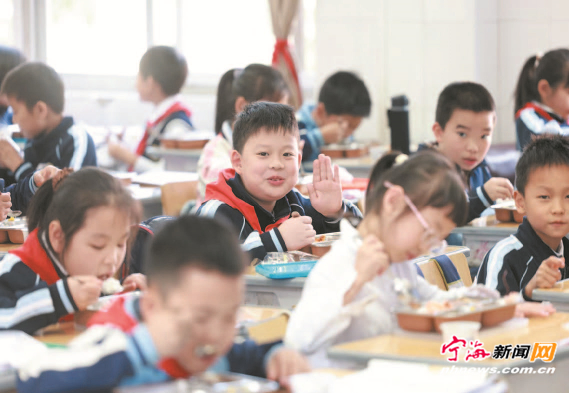 华山小学的孩子们正在吃热腾腾的午餐 教育质量稳步提升