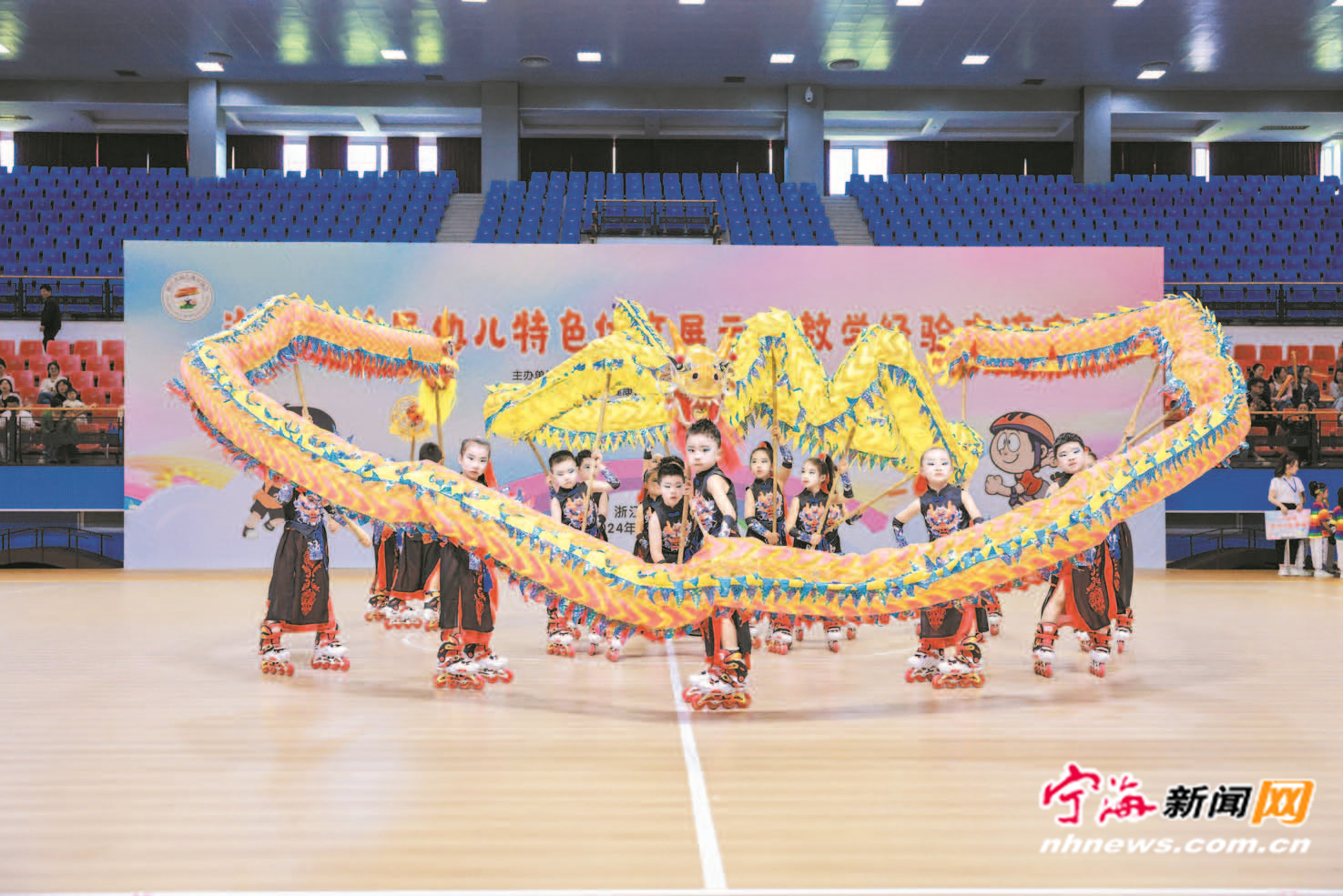 浙江省首届幼儿特色体育展示及教学经验交流会 身穿民族服,脚踏“风火轮”,大佳何镇中心幼儿园的轮滑小将们举着两条中国龙,自由地穿梭舞台,滑出酷炫的曲线……2024年5月,随着浙江省首届幼儿特色体育展示及教学经验交流会在宁海中学体育馆开幕,来自全国各省、市、自治区的幼儿体育协会、妇幼系统等单位的260余名代表齐聚宁海,共探幼儿特色体育发展路径。我县16所幼儿园轮番带来了轮滑、小足球、幼儿太极等特色体育活动,展现了阳光向上的体育精神。