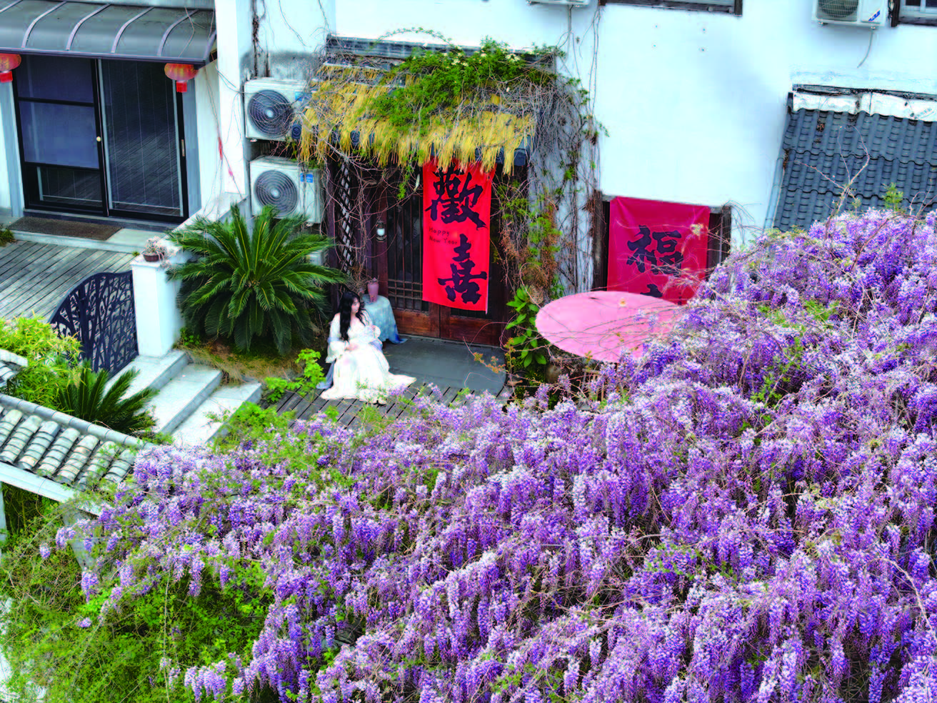 近日,梅林街道仇家村一处紫藤“花瀑”盛放,淡紫色花穗如瀑布垂落白墙,与黛瓦相映成趣,游客纷至沓来,在春日暖阳中定格这片流动的紫色风情。