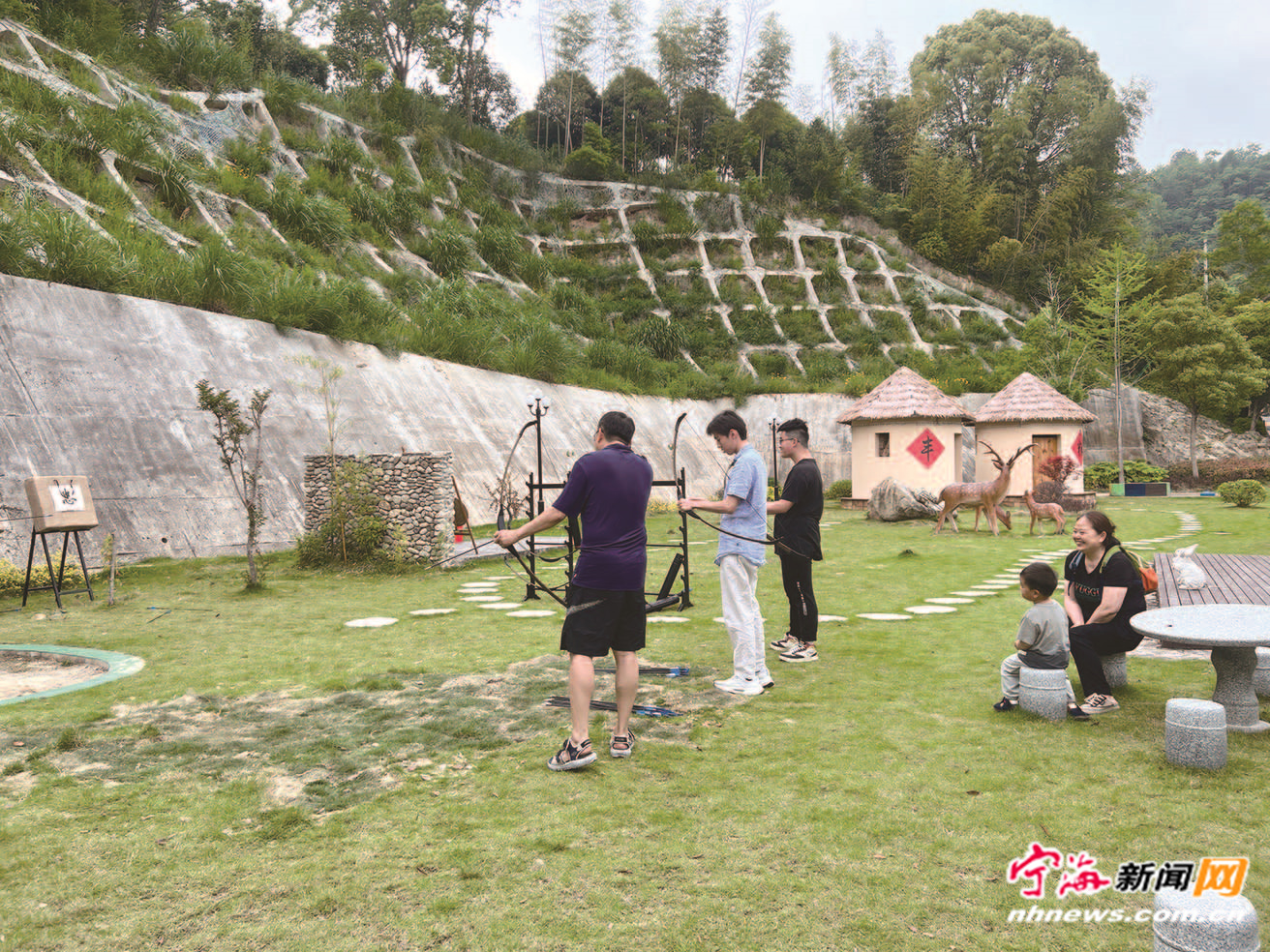 同样热闹的还有深甽镇清潭村。今年五一,清潭村创新推出的“AR进士谷潮玩季”成为亲子家庭的热门打卡地,在这里不仅可以体验热门项目溯溪摸鱼、射箭争霸、虚实空间解密等游戏,还能品尝竹林走地鸡汤火锅。运营团队工作人员告诉记者,这个假期村里日均接待游客约200人次,主要来自宁波、台州等周边县市区。“我们打造的虚实结合体验项目,让孩子们在游戏中感受传统文化。”她指着正在进行的“射箭争霸”活动说,这个改编自古代六艺的互动游戏非常受欢迎,常常需要排队体验。