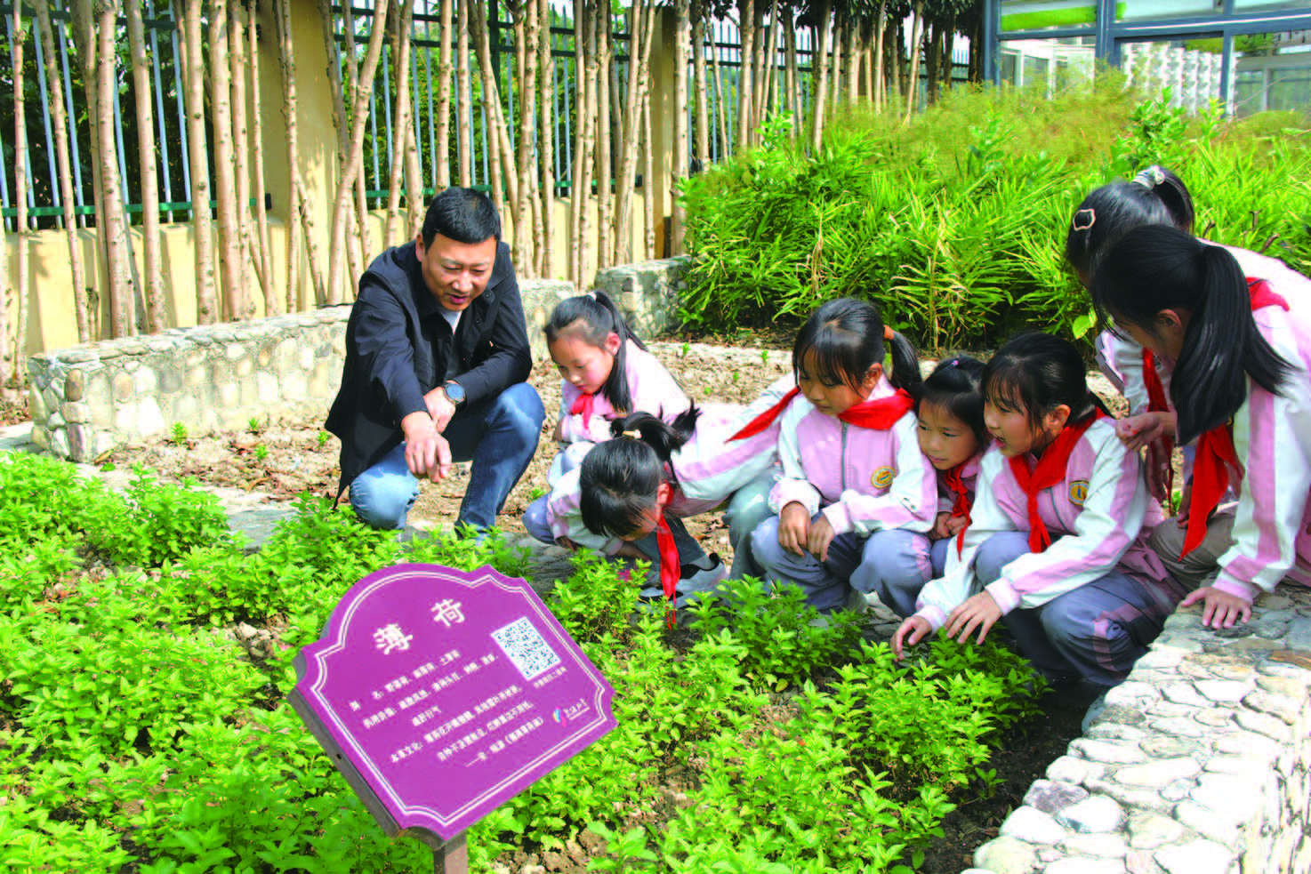 在校园文明建设中,岔路镇中心小学还特别注重传承地域特色文化,校园里的“本草园”就是一大亮点。每周的拓展课时间,本草社团的同学们都会来到园内,学习种植艾草、车前草、薄荷等中草药。三年级学生王依依俨然是个“小专家”,她熟练地向记者介绍:“艾草能去湿止血,薄荷可以提神醒脑,桑叶有清肝明目的功效……”依托“本草园”,学校探索出“分田到班”“多元融合”“自育自立”等特色劳动教学模式。关工委老同志、校外辅导员和热心家长也纷纷走进校园,为孩子们传授耕种知识和劳动经验。各班学生轮流参与耕种课程,在播种、浇水、除草的过程中,感受劳动的乐趣,体会收获的喜悦。如今,“本草园”不仅是劳动实践基地,更成为了重要的“育人场”。