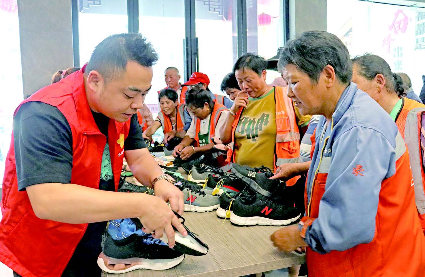 昨日,桃源街道谢豹社区的爱心商户向辖区“城市美容师”赠送百双透气运动鞋,作为回馈社会的小小善举。