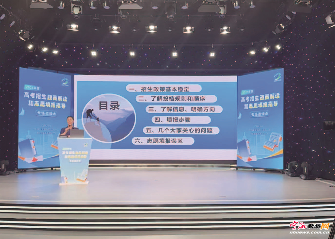 图为县教育局考试中心专家在宁海传媒集团为考生和家长解读高考招生政策,分享志愿填报经验。 记者潘璐璐