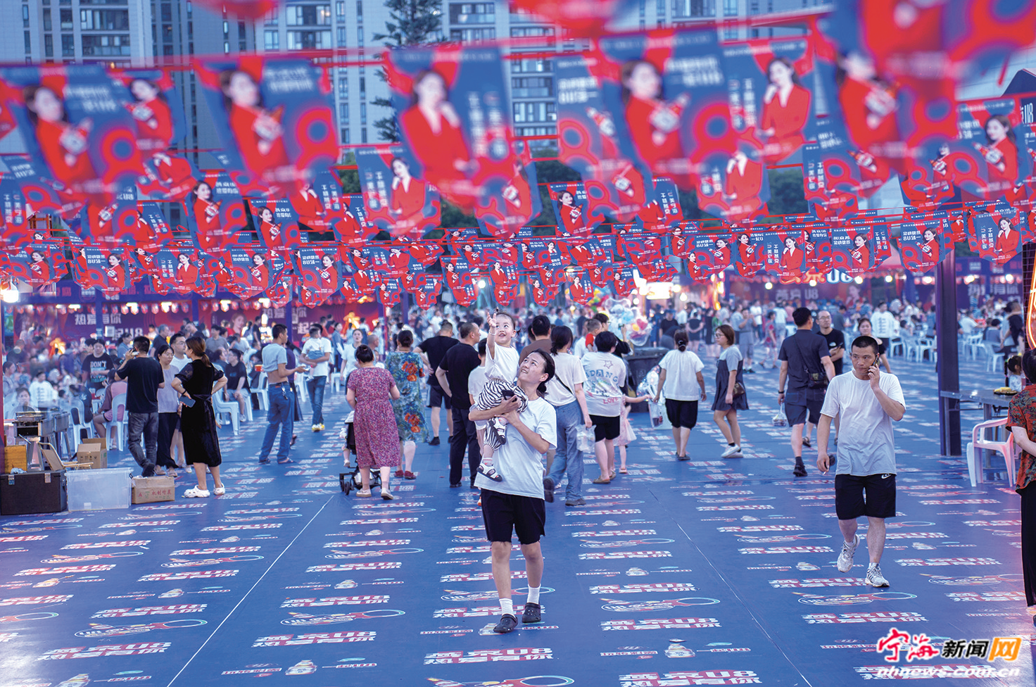 文玩集市巧妙融合传统与现代元素,文创手作与潮流摊位相得益彰;儿童游乐区欢声笑语不断,蹦蹦床、摇摇车等为孩子们提供释放天性的活动空间。“大人安心聚会,孩子开心玩耍,各得其乐互不打扰。”家住附近的潘女士正与家人享用夜宵,看着不远处玩得满头大汗的孩子们,脸上洋溢着幸福的笑容。