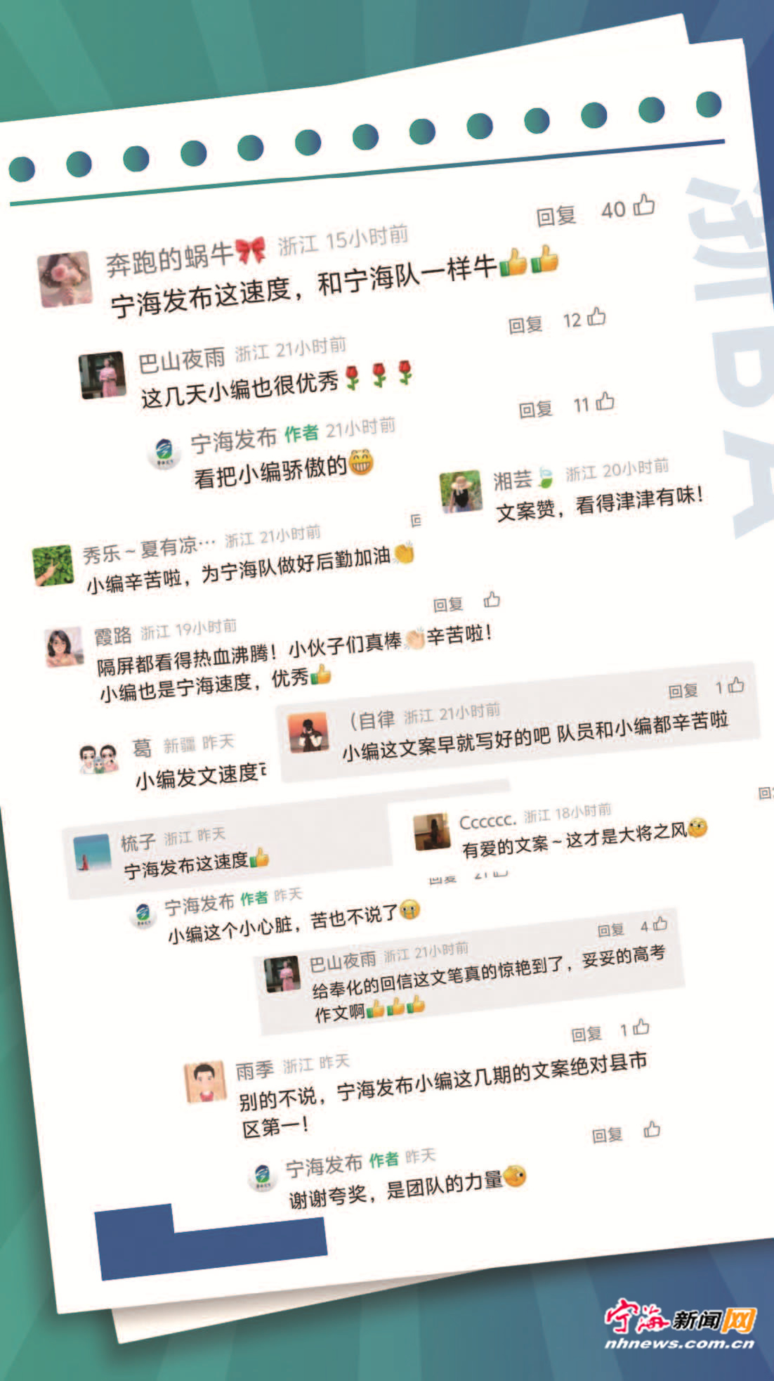 宁海队的拼劲点燃全网,宁海传媒集团小编的妙笔与神速亦获满堂彩。