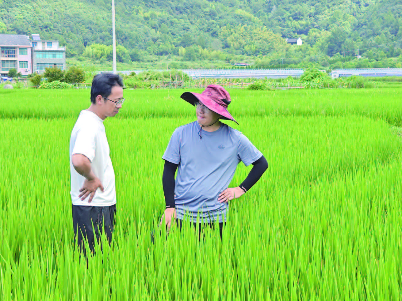 “我们农场种植的水稻有甬优12、甬优7860、甬优7850、甬优1540,以及试种的100亩新品种甬优31。当前是水稻拔节孕穗的关键阶段,此时植株生长迅速,幼穗开始分化发育,对水肥需求激增,抗逆性却相对较弱。我们现在主要做的就是肥料和水分管理。”汪岳说。