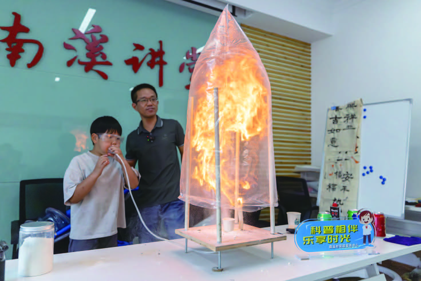 日前,在深甽镇南溪村文化礼堂,科学教师孔小利用废弃饮水桶、PVC管和丁烷气罐制作的“等离子炮”引发阵阵惊呼。当蓝色火焰呼啸而出,三米外的纸杯塔应声倒塌,孩子们发出阵阵惊叹。