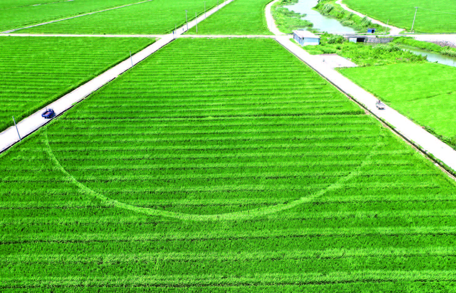 在长街镇连浦村千亩方制种水稻基地里,稻浪随风起伏,田埂上,“赶花人”两人一组,将长绳横拉在一丘丘稻田间,沿着田埂快速移动,长绳在稻田里“划过”一条优美的弧线,激起层层稻浪,将父本的稻花花粉扬起来,传给母本稻花授粉,以保制种水稻的优质优产。