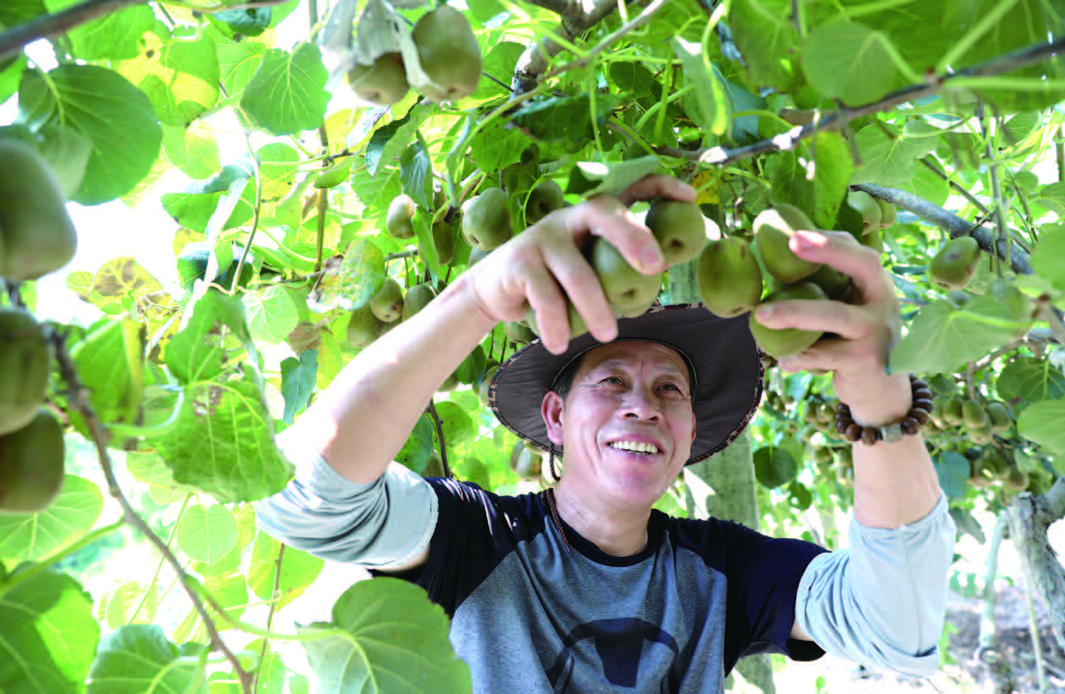 眼下正是红心猕猴桃成熟上市的时节,在胡陈乡岙里王村为丰家庭农场的猕猴桃种植基地,一颗颗硕大饱满的红心猕猴桃挂满枝头,果农穿梭在果树间采摘果实。该村种植有红心猕猴桃200余亩,亩均产值超2万元,还依托猕猴桃产业,开发归云洞景点,打造“旅游观光、水果采摘”的经济发展模式。