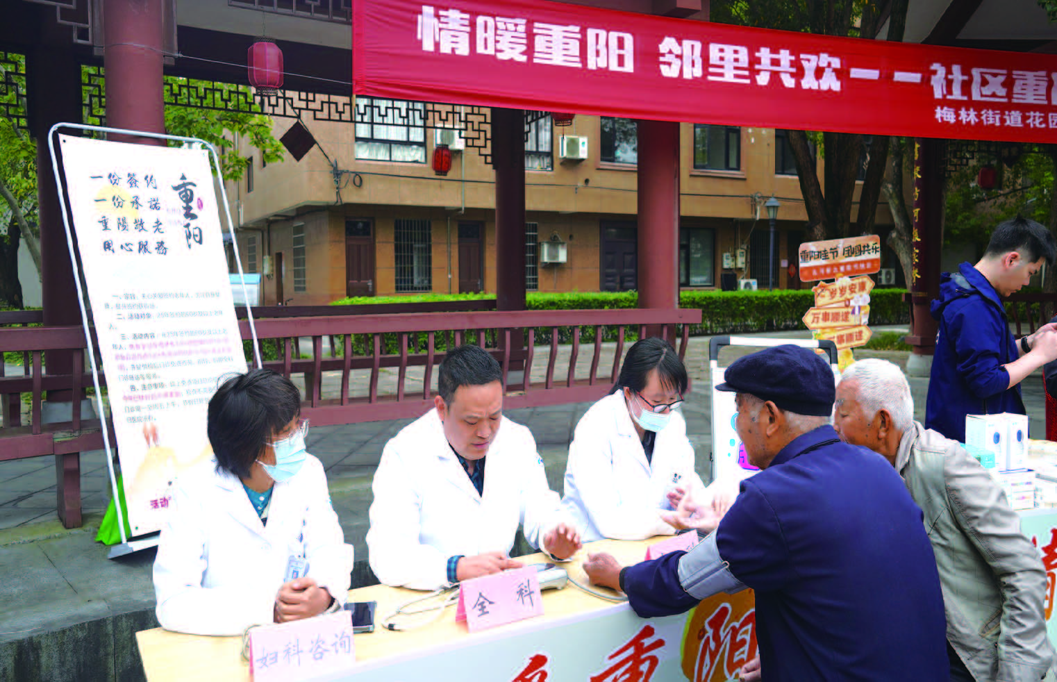 日前,梅林街道花园社区党群服务中心举办“情暖重阳,邻里共欢——社区重阳便民集市”活动。活动整合医疗、通讯、社区等多方资源,以健康检测、反诈科普等“暖心服务”为辖区老年人送上节日关怀,让传统重阳兼具专业温度与邻里温情。