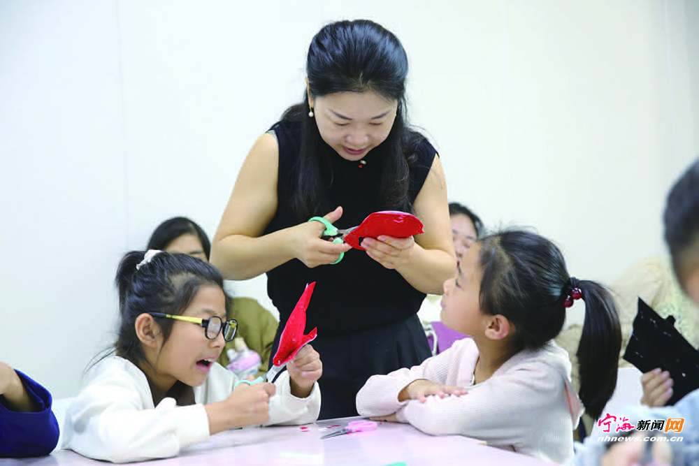 近日,西店镇妇联开展“小小传承人”非遗剪纸体验活动。宁海县非遗传承人章苏娣老师现场授课,40名青少年共同感受剪纸艺术的文化魅力与创作乐趣。