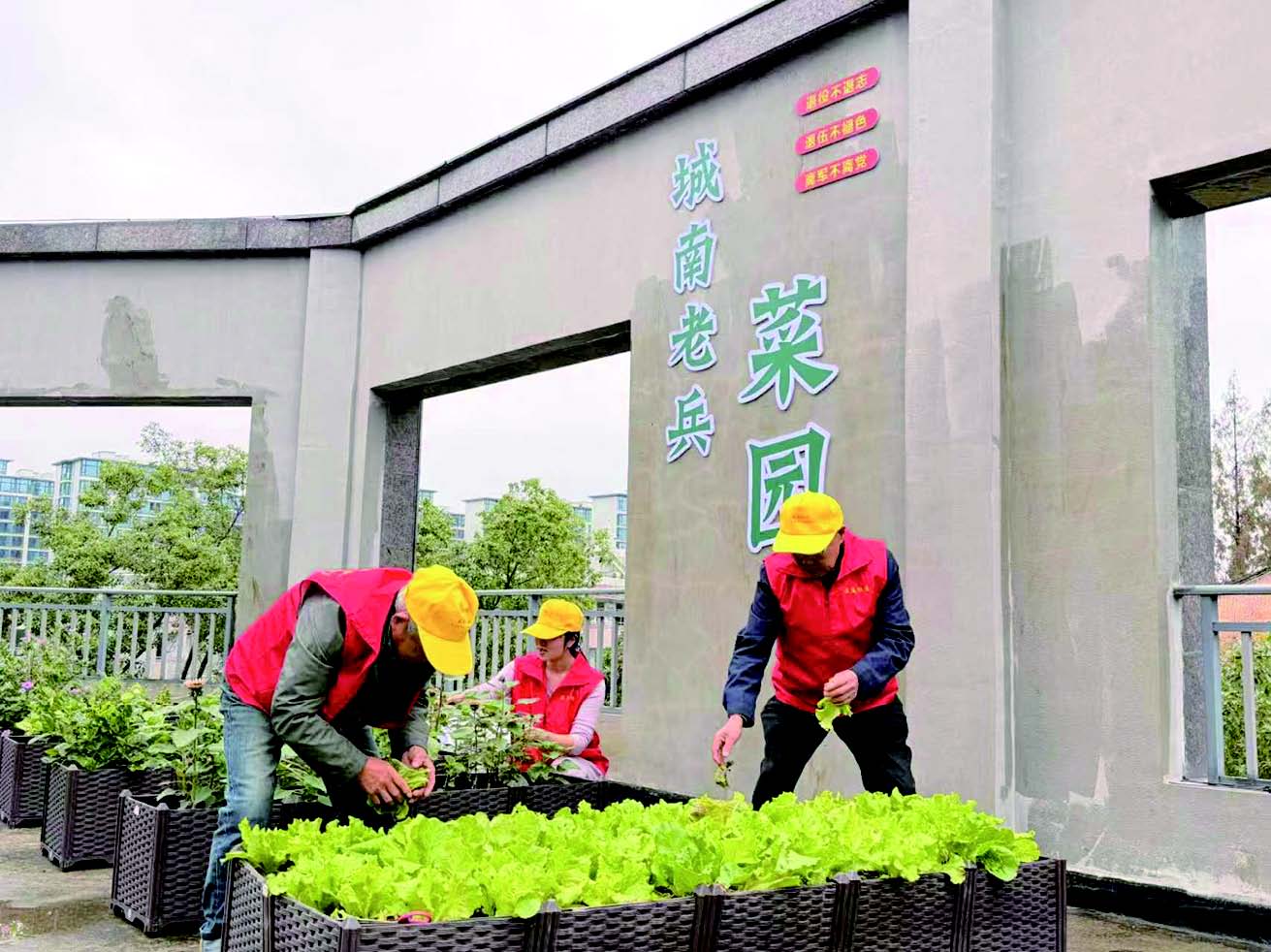 更有意思的是社区里的“老兵菜园”。社区因随迁老人的农耕情结存在“毁绿种菜”问题,既占用公共绿地又影响社区环境,于是,社区计划将100多平方米闲置顶楼阳台改造成“老兵菜园”,老兵们在这块土地上翻土、种菜、浇水,等蔬菜成熟了,老兵们就把菜送给社区里生活有困难的人。