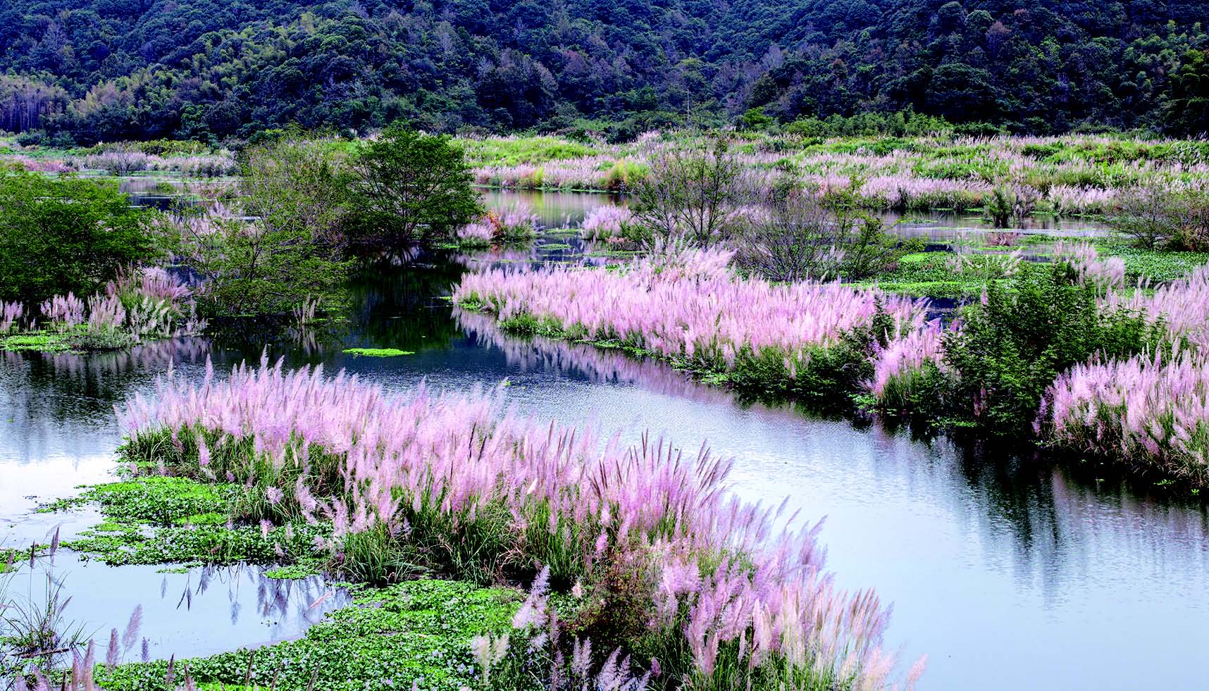 立冬过后,秋意渐浓,在跃龙街道石舌章村洋溪之畔,成片的斑茅花开放,衬着溪水、野树、远山,色彩斑斓、秋韵如画。