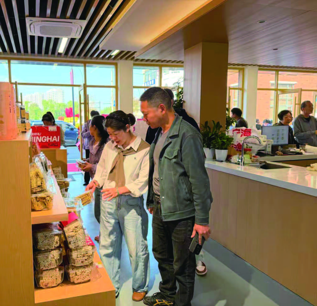 走进“花源里”,300余平方米的空间明亮通透,原木色装修风格搭配绿植点缀,让人倍感温馨。内部区块划分清晰,三大核心功能区各具特色:进门左侧的“零叁茶咖”区,茶香与咖啡香交织,书架上的书籍随手可阅,是居民休闲小聚的好去处;中间是农产品展销区,货架上整齐陈列着宁海18个乡镇(街道)的50余种特色农产品与风味小吃;最右侧的沙龙区整齐摆放着桌椅,该空间可容纳30余人,未来将定期开展技能培训、手工体验等活动。“这个‘花源里’还挺新鲜,农产品价格亲民,环境又这么舒适,以后常约朋友来这儿喝咖啡。”居民王女士感慨这里给周边带来的新活力。