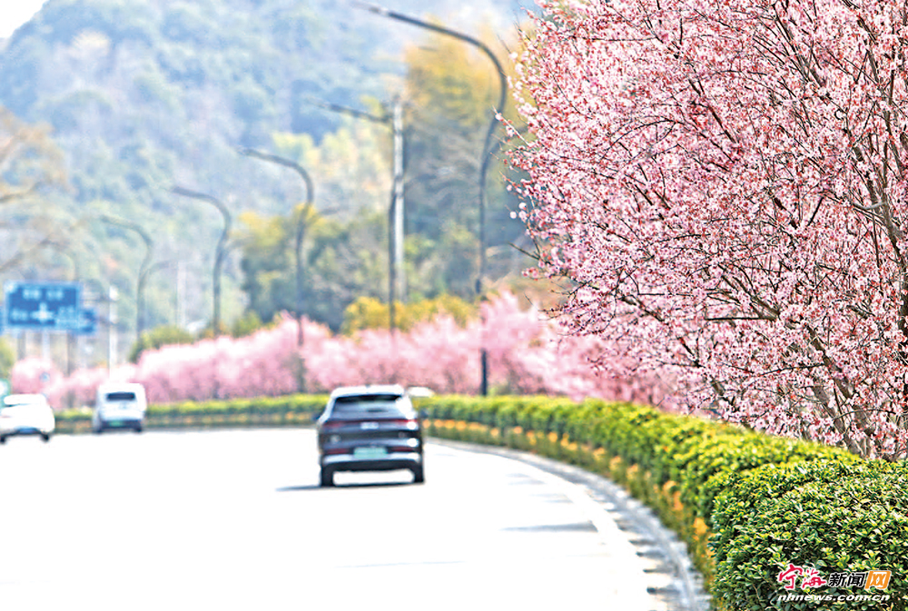 近段时间,在桃源街道花山村前的公路边,成排的美人梅在春光中盛开,不断延伸的“粉色花海”分外夺目,散发着淡淡的梅香,春日气息扑面而来。
