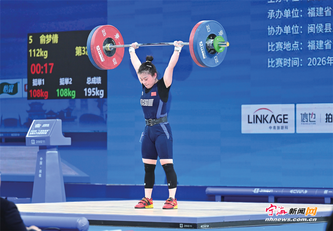宁海新闻网讯(记者 沈鑫 通讯员 王钰丹) 4月15日,2026年“八闽首邑杯”全国女子举重锦标赛在福建福州火热开赛。在首日女子49公斤级A组决赛中,宁海籍运动员俞梦倩发挥稳健,以抓举87公斤、挺举112公斤、总成绩199公斤的绝对实力,包揽该级别抓举、挺举、总成绩三枚金牌,强势登顶。