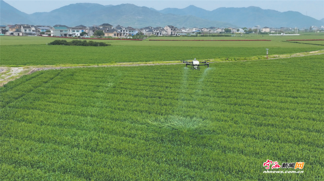 在长街镇连浦村,千亩小麦示范基地绿意盎然,长势喜人。植保无人机正在离地约2米的低空进行飞防作业,向连片的小麦喷施防赤霉病的药水。“小麦开花率达到5%至10%,正是防控赤霉病的时机。”种植大户胡强强蹲在田埂上,一边查看小麦长势,一边向记者介绍,抽穗扬花期若遭遇持续阴雨天气,且防控不及时,不仅会导致小麦大幅减产,还会影响籽粒品质,降低种植收益。