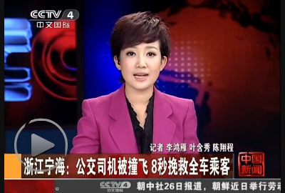 7月23日上午,一辆翻斗车在桃源街道科技大道撞上一辆公交车,公交车司机王震从驾驶座上被撞飞到车门处,致全身多处骨折。公交车无人驾驶,失控打转,前面又有车驶来!危急时刻,王震忍痛起身,8秒内将车安全停稳,救下整车人。随后,他不停歇地组织救援车祸伤员。事后到医院检查,他却是全车伤得最重的。事发一个月后,曾得到他救助的热心乘客到县公交公司打探王震的地址打算去看望他,才“抖”出这个秘密来。连日来,中央和省级各大媒体纷纷跟进报道宁海公交“坚强哥”的感人事迹。8月26日,中央电视台四套《中国新闻》用了两分钟报道这则新闻。