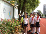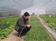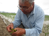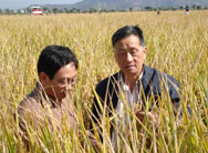 《县农技总站党员查看甜瓜品比试验田与水稻超高产攻关田》